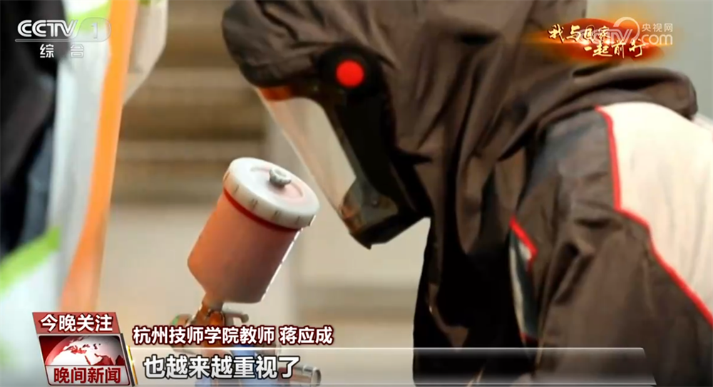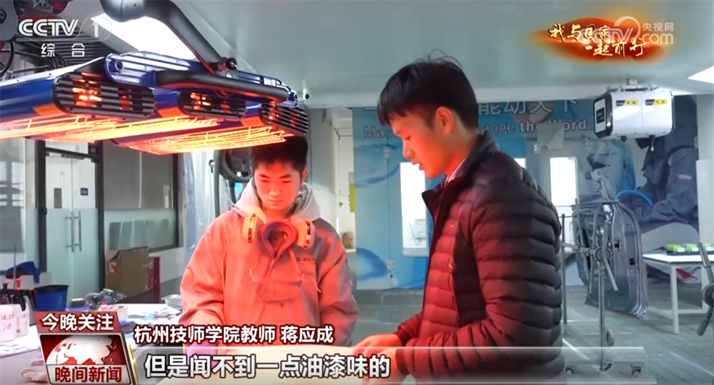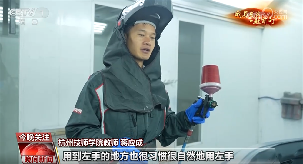蒋应成:以前可能就是一些油性漆不太环保的这种会居多,现在我们教学比赛、训练等等都是用水性漆为主的。从以前的车间脏乱差的情况转变到现在很干净,走进去以后,虽然是油漆车间,但是闻不到一点油漆味。