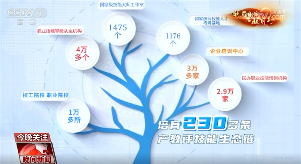 技能点亮前程。蒋应成的成长源自国家持续加大对技能人才的培训和职业教育的普及,支持劳动者以一技之长创造美好未来。目前,我国已建成规模庞大的职业技能培训网络,包含1万多所技工院校、职业院校,2.9万家民办职业技能培训机构,3万多家企业培训中心,职业技能等级认定机构超过4万个,建设1176个国家级高技能人才培训基地和1475个国家级技能大师工作室,培育230多条产教评技能生态链。全国技能人才总量超2.2亿人,其中高技能人才超7200万。